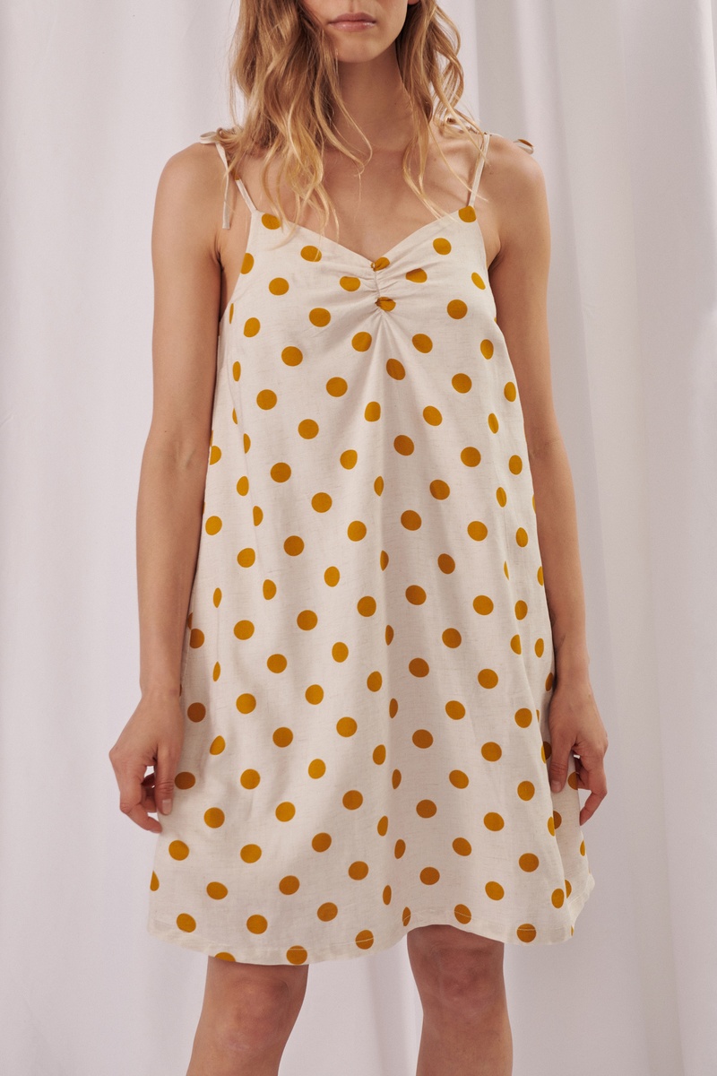 Linnen Trapezium Jurk - Wit en Mosterdgeel