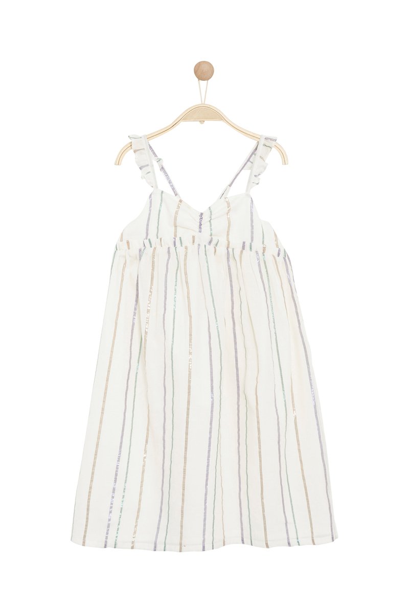 Smalle verstelbare bandjes en gekruiste bandjes aan de achterkant. Streepmotief.