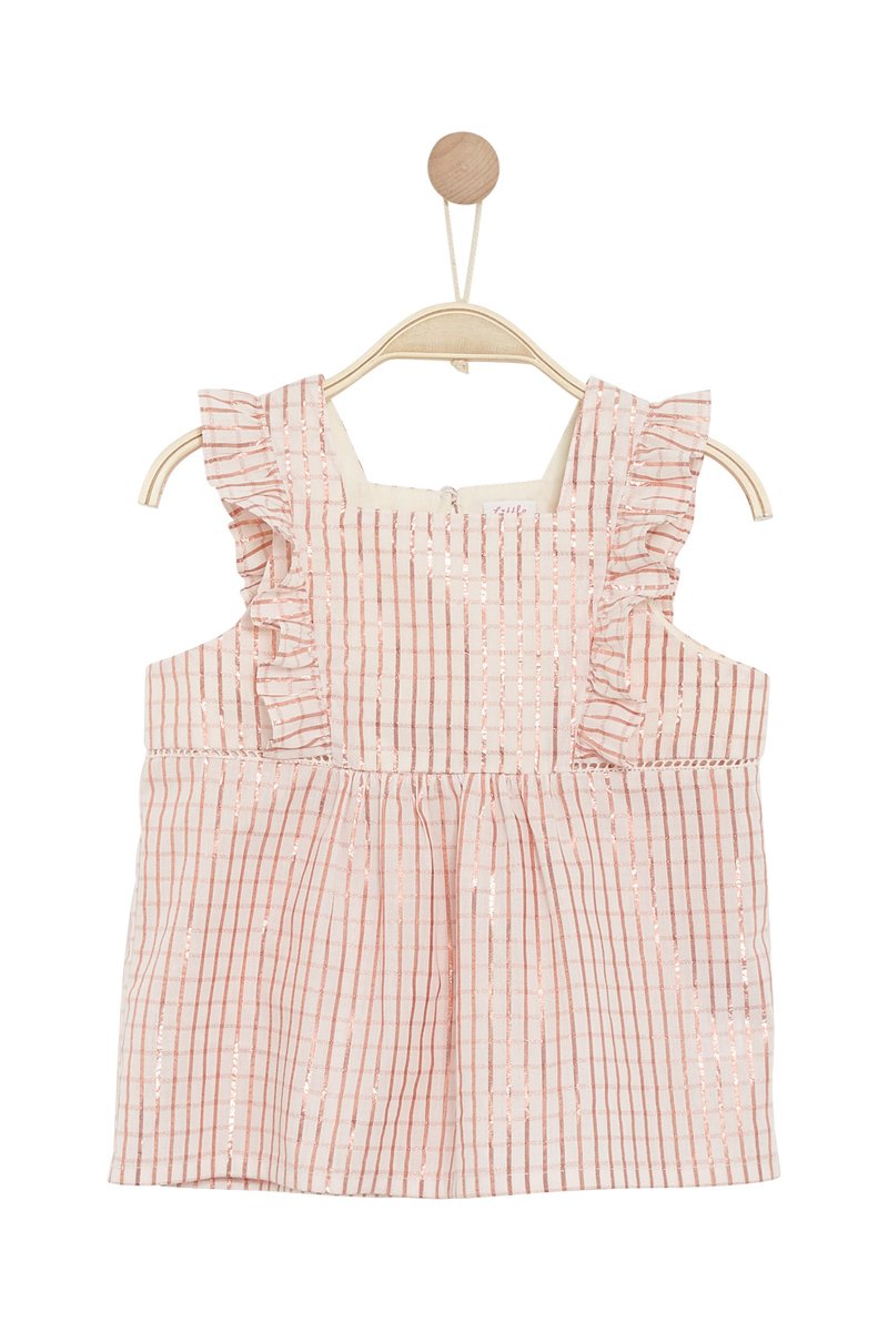Ruitmotief. Ruches aan de voor- en achterkant.