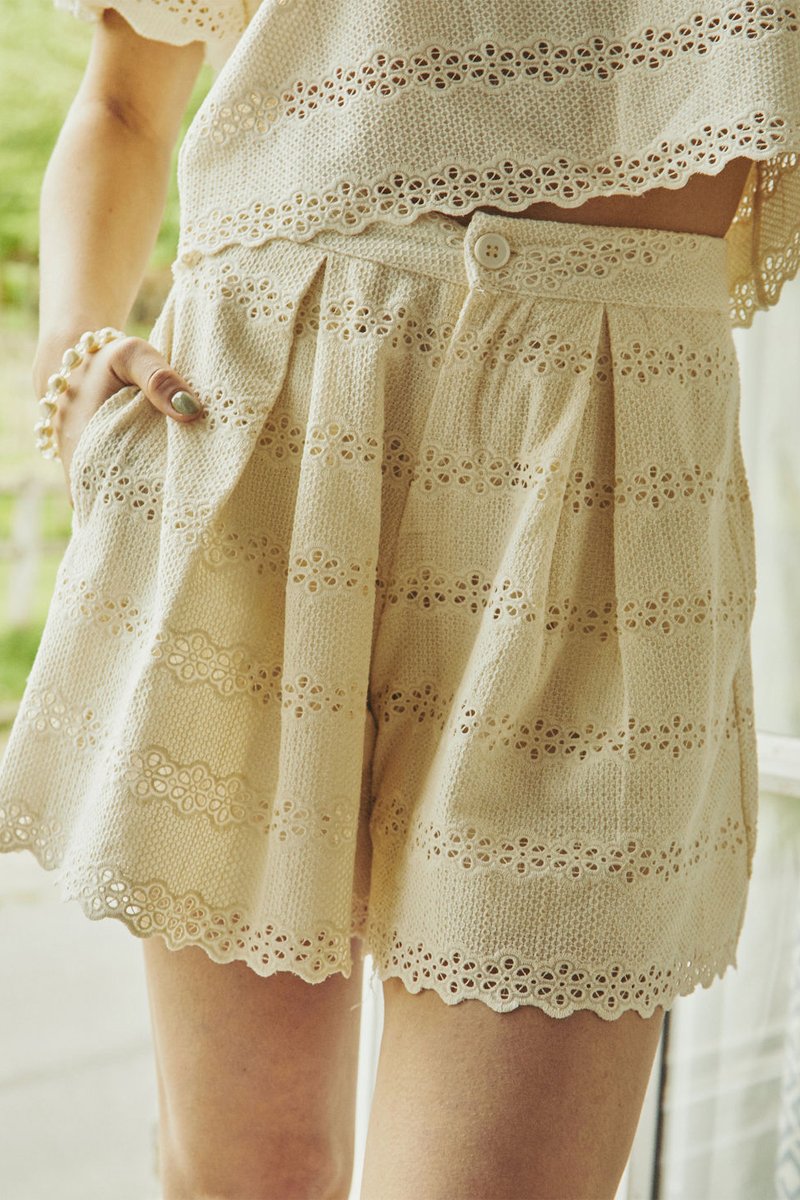 Short met Engelse borduursels.