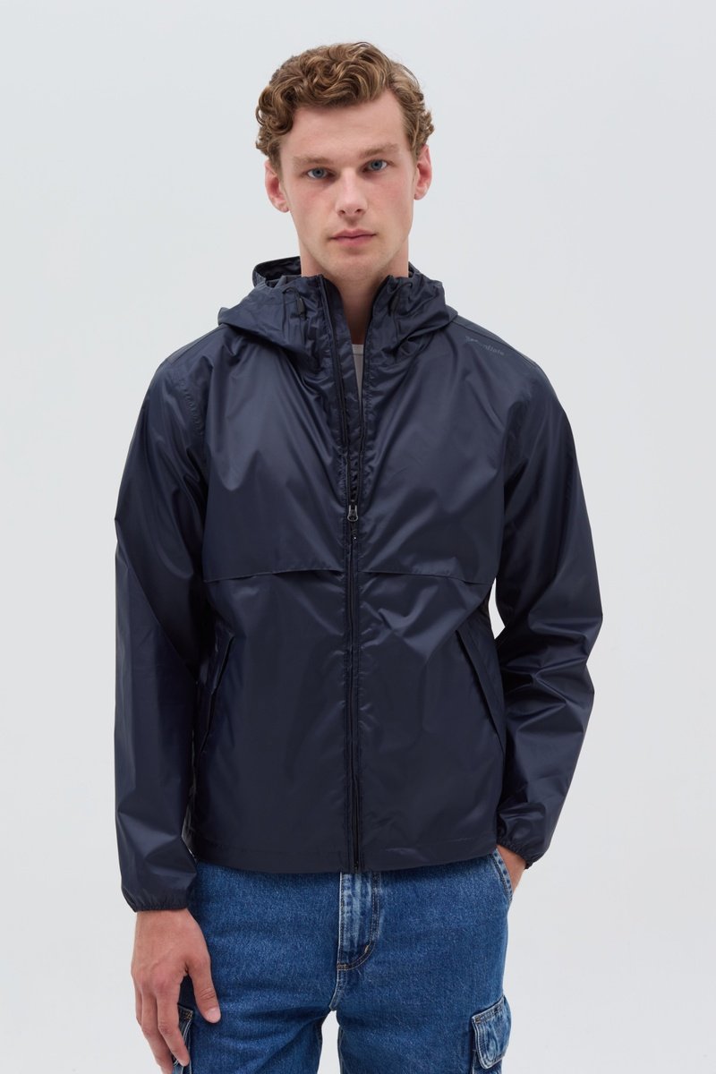 Trekkoorden met stoppers bij de capuchon en aan de onderkant.