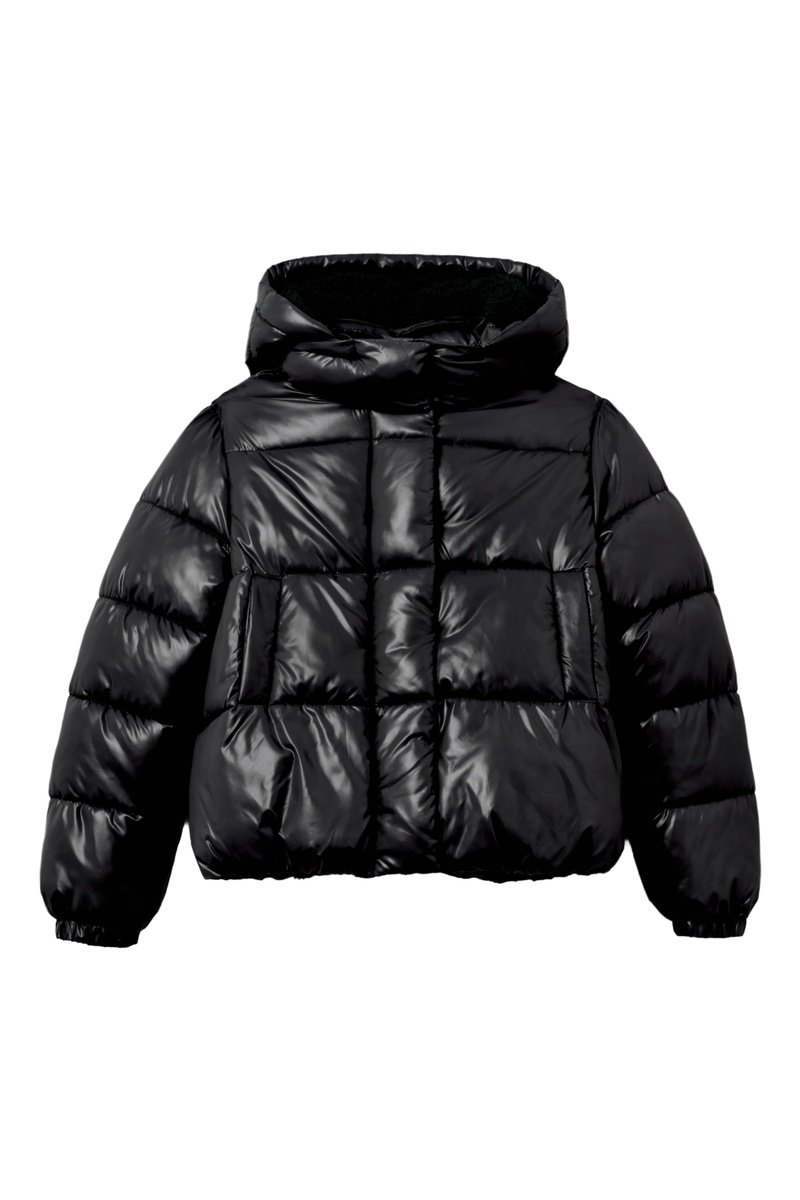 Gewatteerde jas met capuchon - Zwart