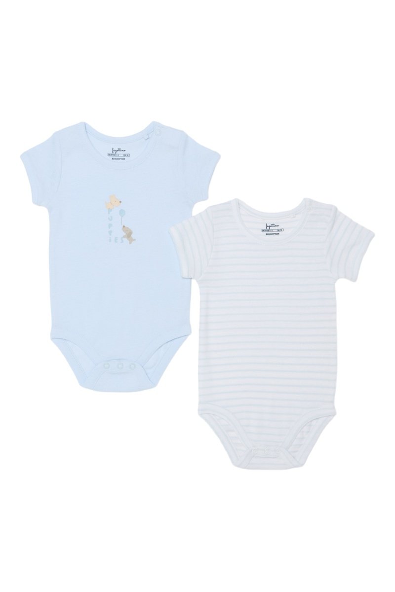 2 Biologische Katoenen Rompertjes - Wit en Hemelsblauw