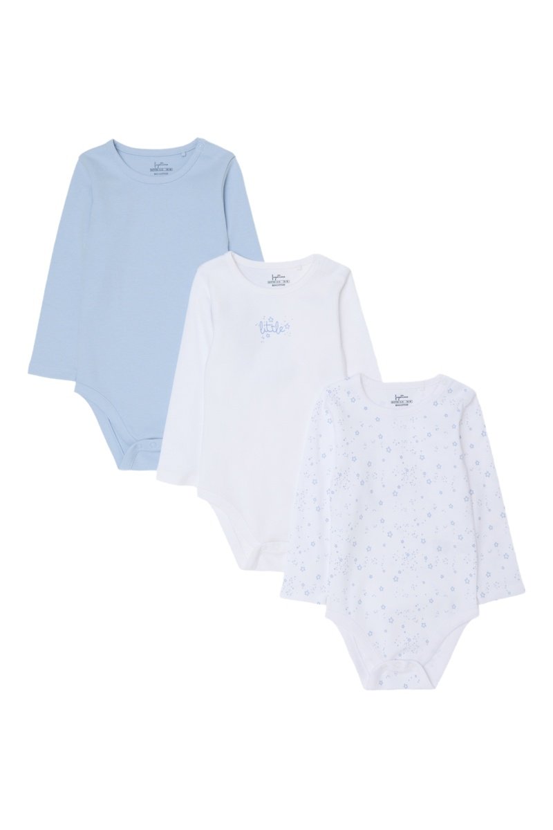 3 Biologische Katoenen Rompertjes - Hemelsblauw en Wit