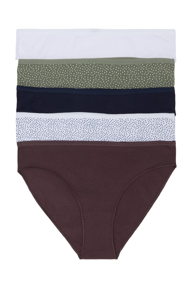 5 slips van biologische katoenmix waarvan 2 met decoratief motief.