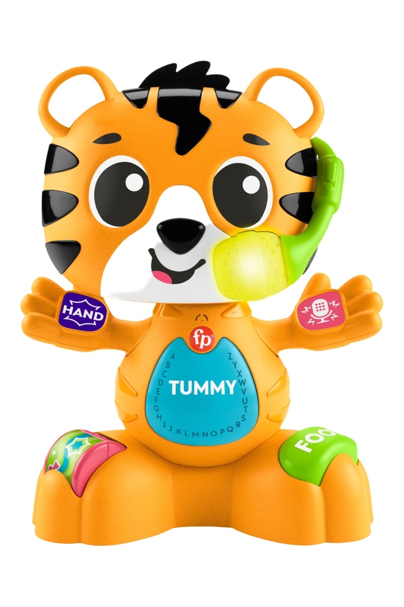Het early learning spel Link Squad Tijger werkt door te drukken op de hand, buik of voeten van de tijger om liedjes, geluidjes en zinnetjes te horen.