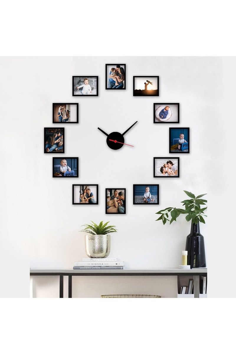Klok met 12 fotolijstjes.