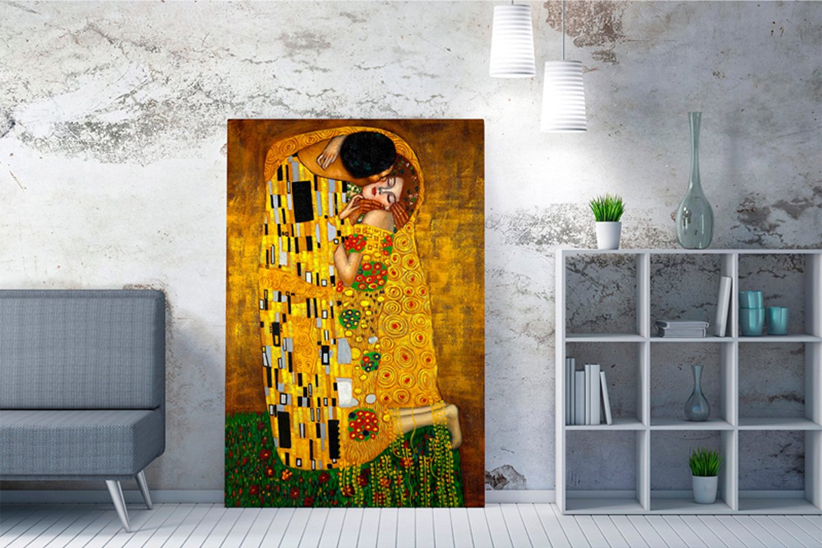 Reproductie van het werk "De Kus" van Gustav Klimt.
