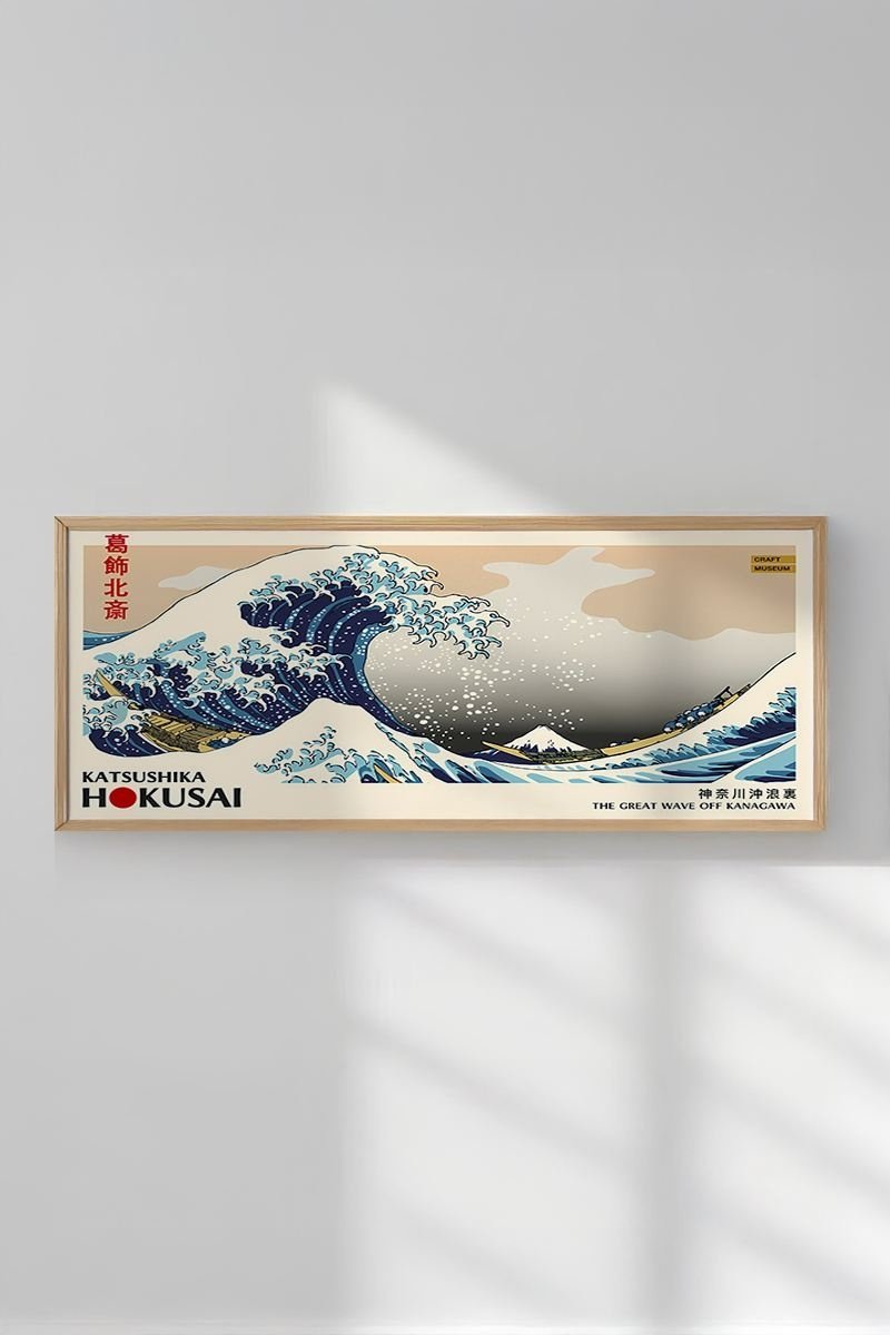 Wanddecoratie «La Grande Vague de Kanagawa» Katsushika Hokusai - 50 x 120 cm