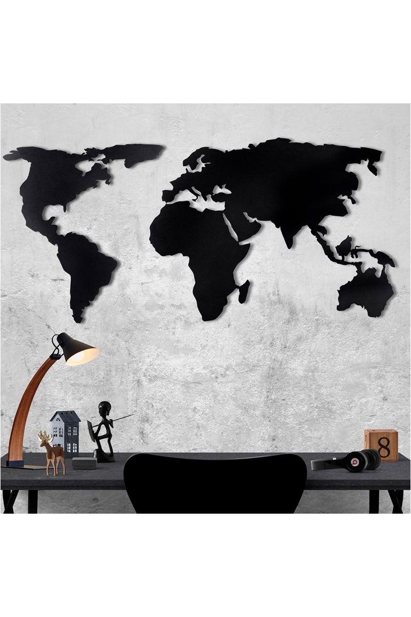 Wanddecoratie World Map Silhouette XL - 85 x 170 cm - Zwart