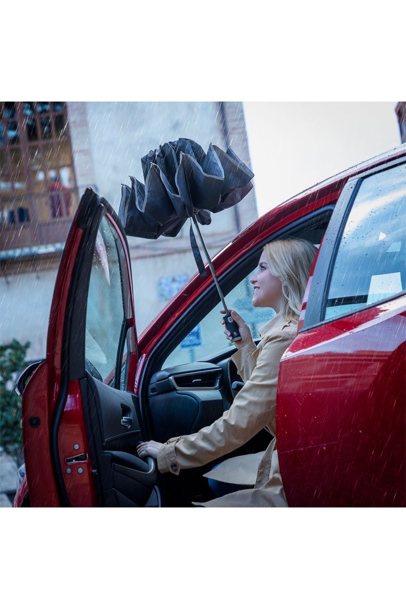 Paraplu met Omgekeerde Sluiting - Zwart en Grijs