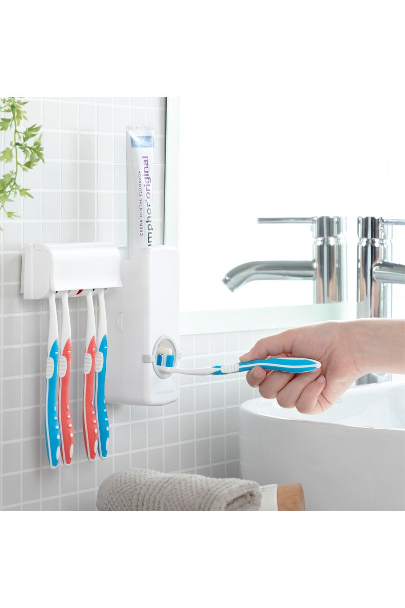 Deze praktische tandpasta dispenser met tandenborstelhouder maakt mondverzorging makkelijk en hygiënisch.