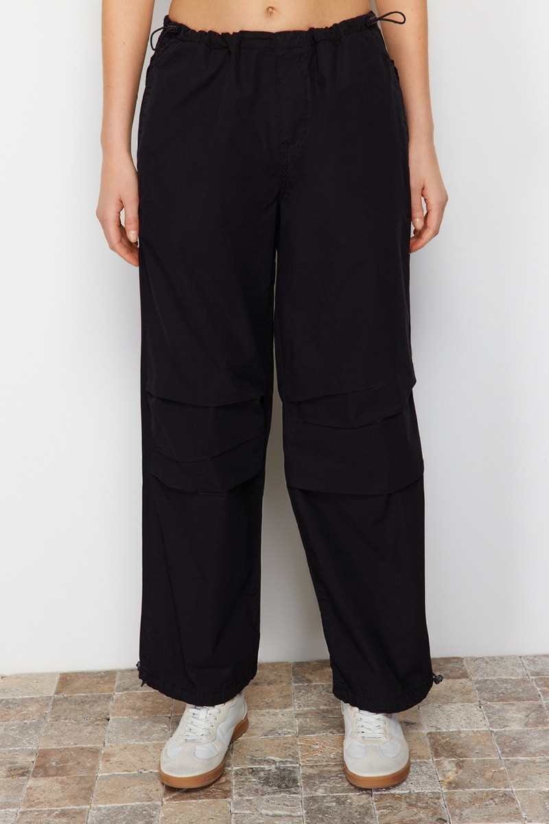 Het model is 1 m 80 lang en draagt maat XS/34.
