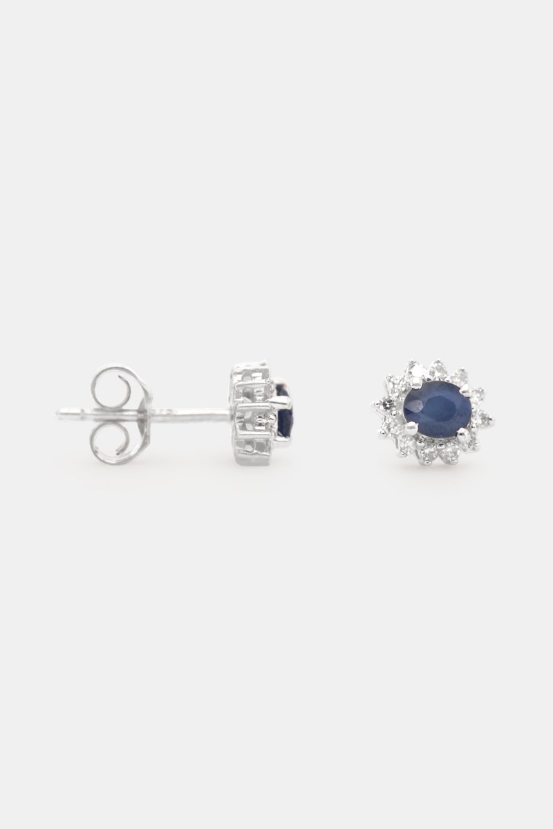 Materiaal: witgoud 375/1000, diamanten 0,12 karaat/24 en saffieren 0,30 karaat/2