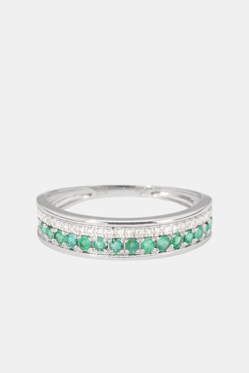 Ring Double Voie - Witgoud, Diamanten en Smaragd