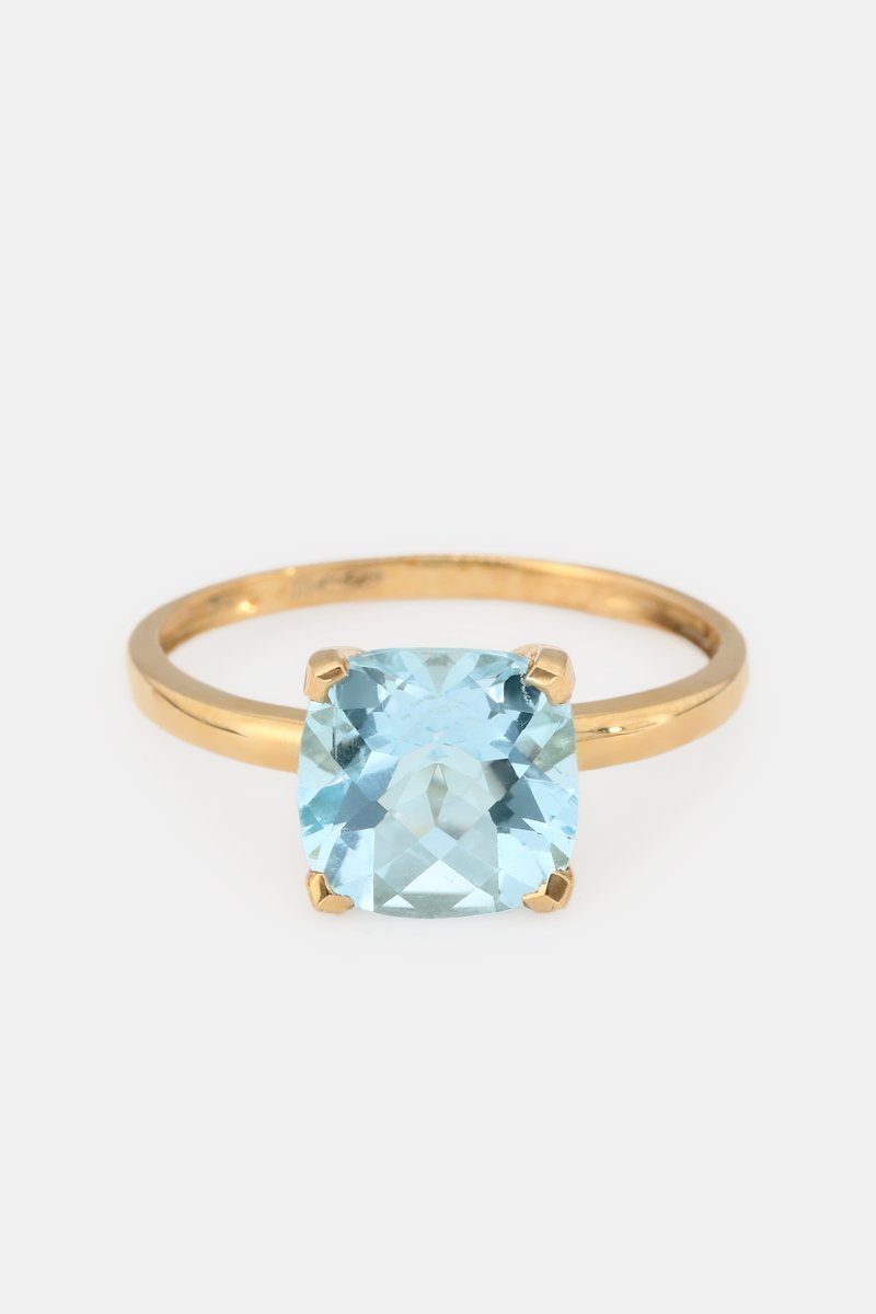 Materiaal: geelgoud 375/1000 en topaas 2.67 karaat/1