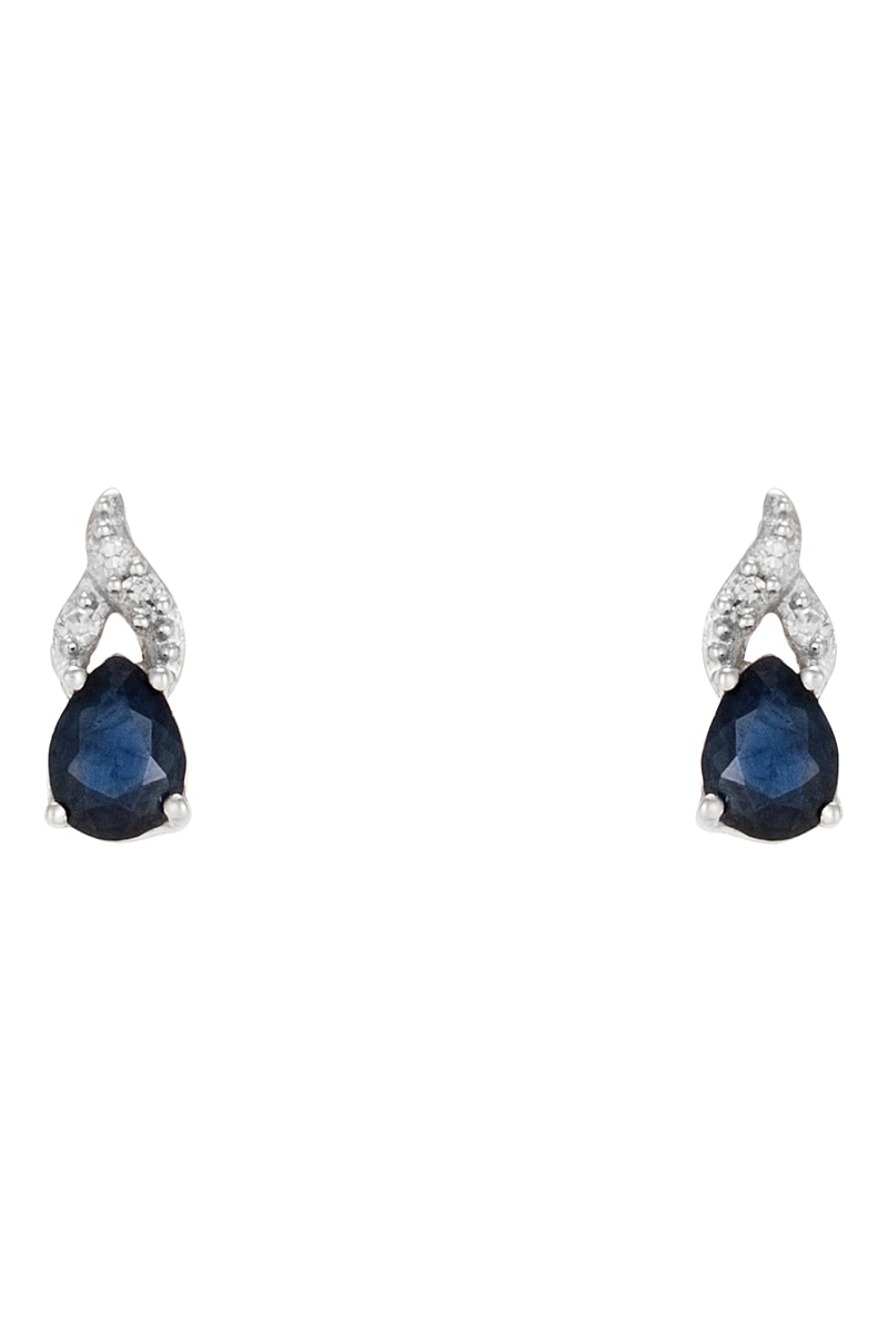 Oorbellen van witgoud ingelegd met 4 diamanten en 1 saffier.