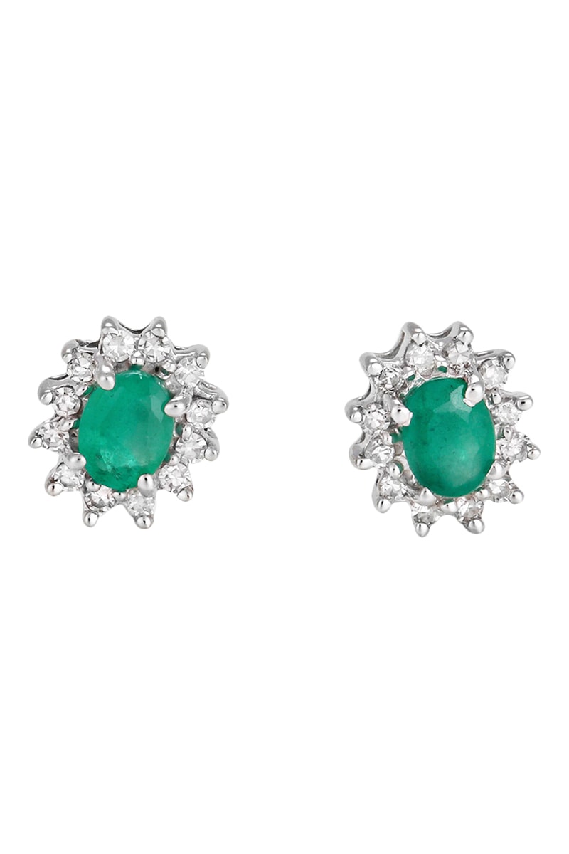 Oorbellen van witgoud ingelegd met 12 diamanten en 1 smaragd.