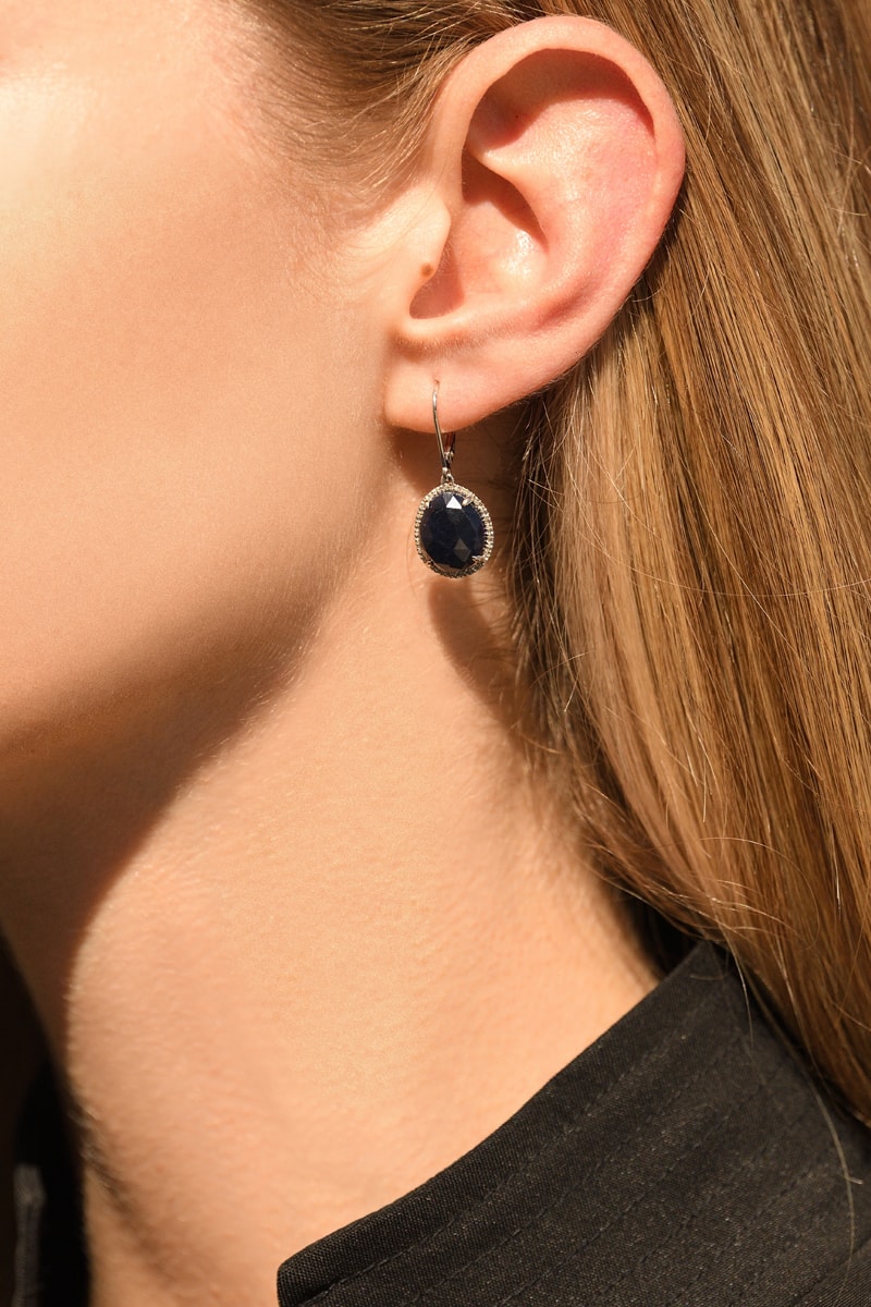 Oorbellen van witgoud ingelegd met 50 diamanten en 1 saffier.