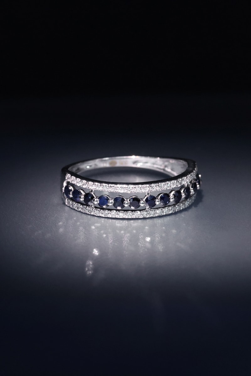 Ring van witgoud ingelegd met 48 diamanten en 13 saffieren.