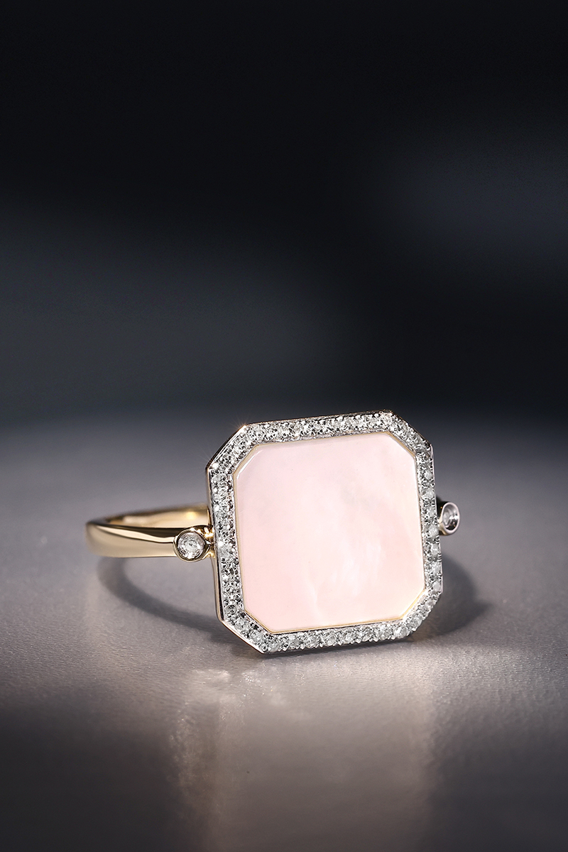 Ring Emilia - Geelgoud, Diamanten en Parelmoer