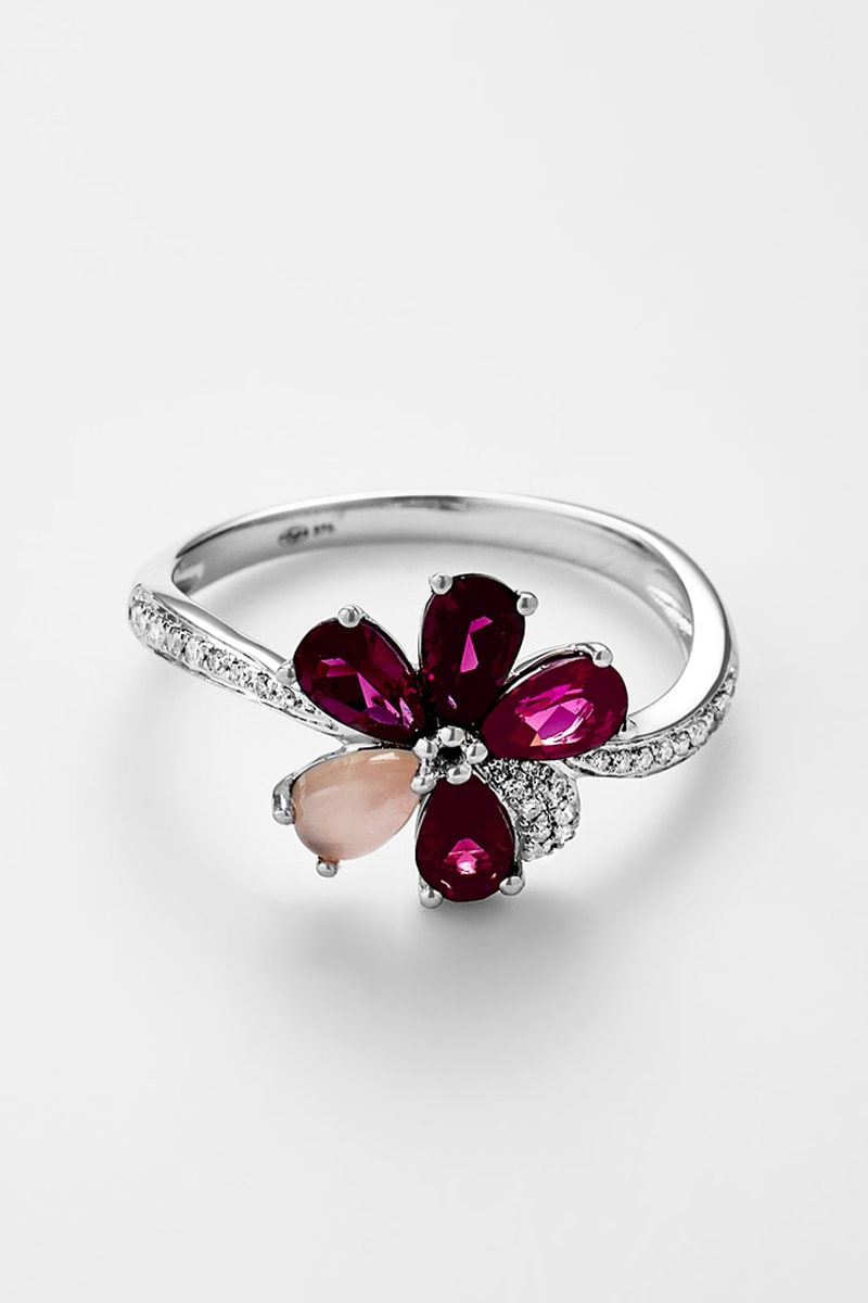 Ring Sohane - Witgoud, Rhodoliet, Diamant en Kwarts
