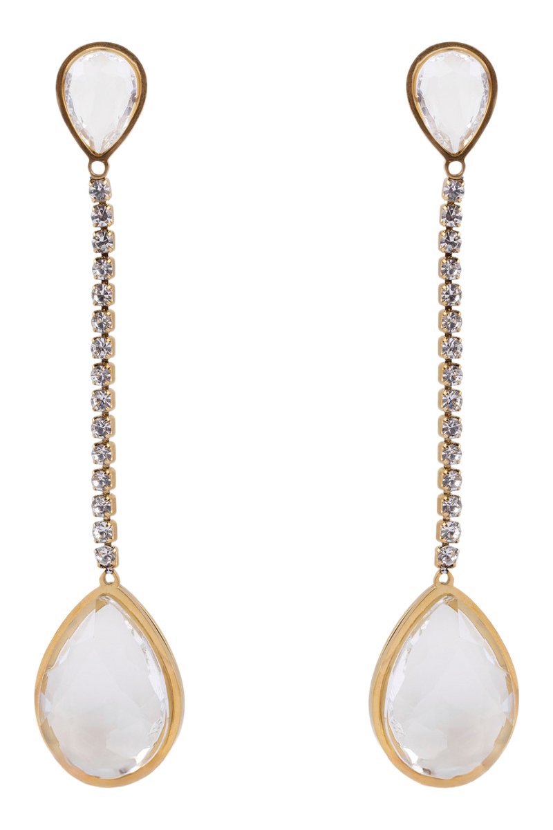 Hangende oorbellen van doublé geelgoud ingelegd met 17 kristallen.