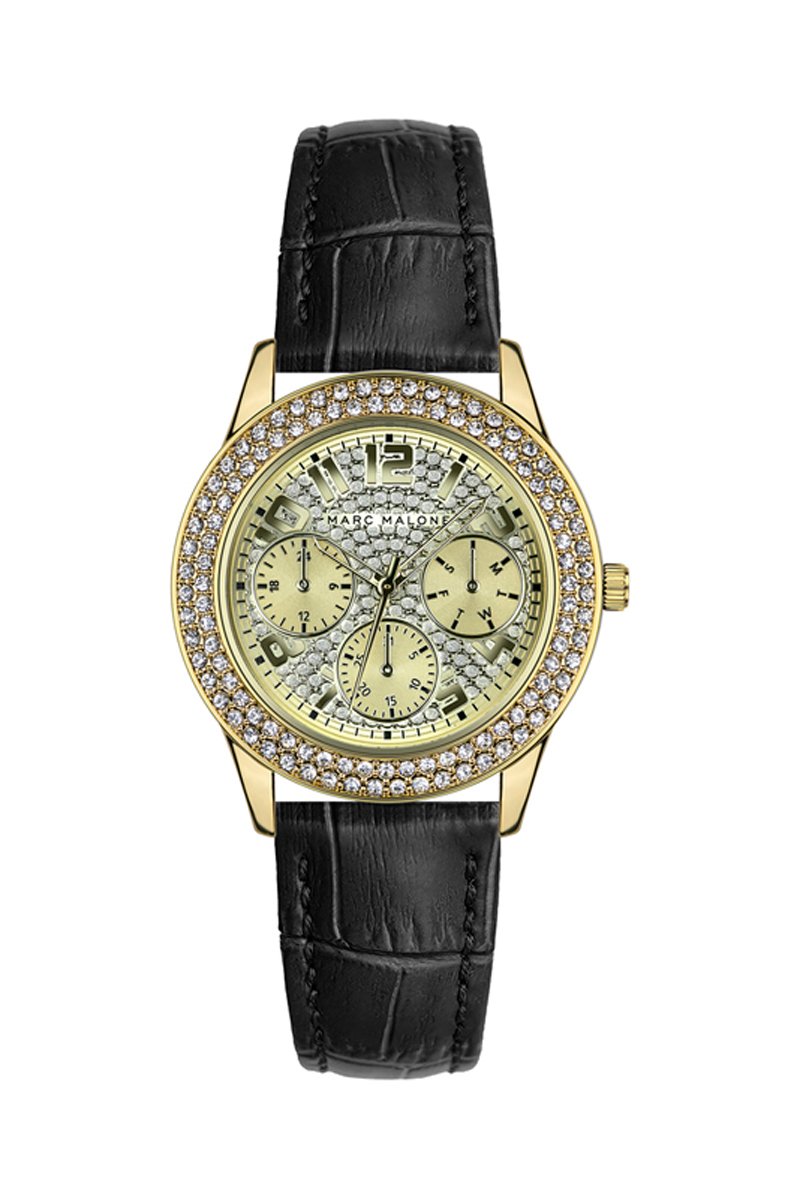 Leren Quartz Horloge - Zwart en Goudkleurig