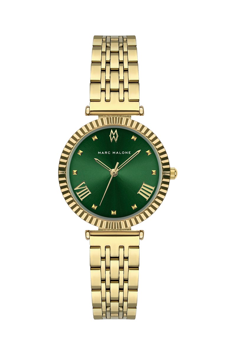 Stalen Quartz Horloge - Goudkleurig en groen - Marc Malone