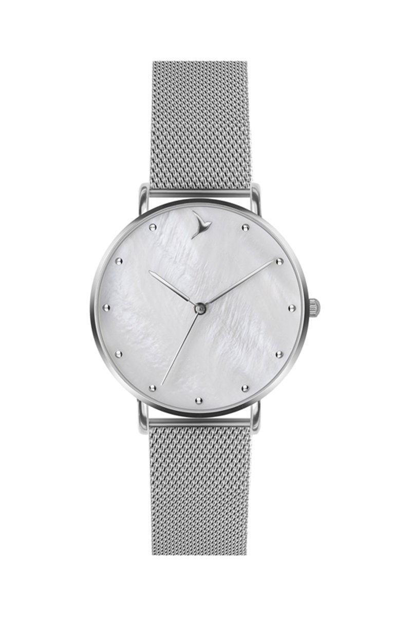 Stalen en Parelmoeren Quartz Horloge - Zilverkleurig - Emily Westwood