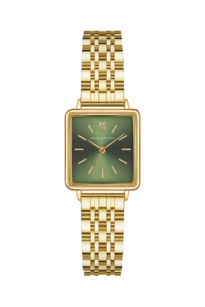 Stalen Quartz Horloge - Goudkleurig en Groen - Marc Malone - Marc Malone