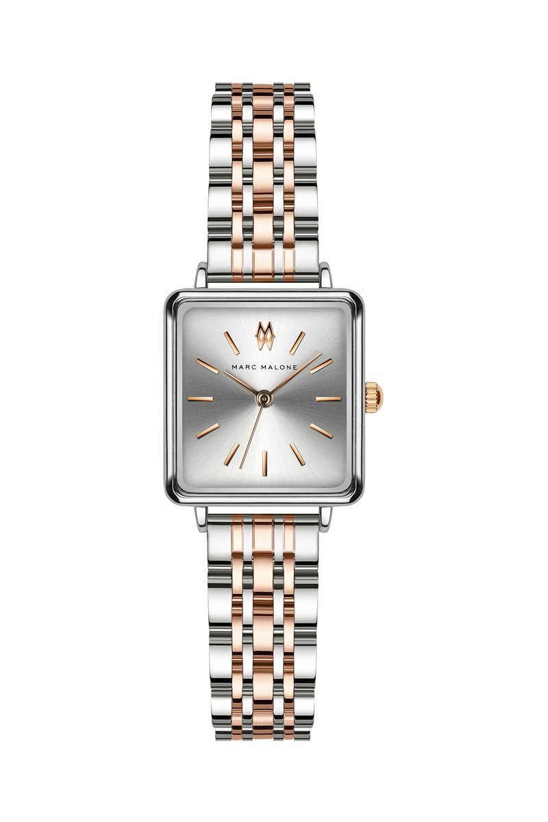 Stalen Quartz Horloge - Zilverkleurig en Roségoudkleurig - Marc Malone
