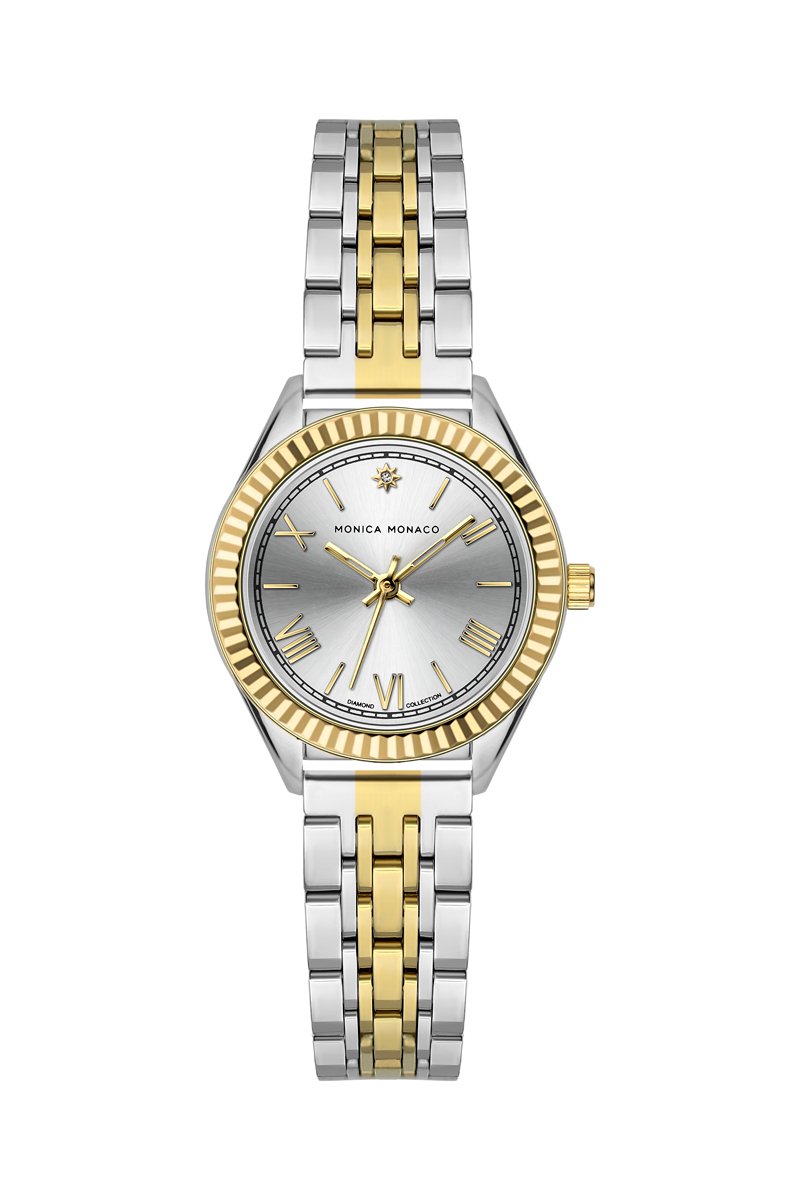 Stalen Quartz Horloge met Diamant - Zilverkleurig en Goudkleurig - Monica Monaco