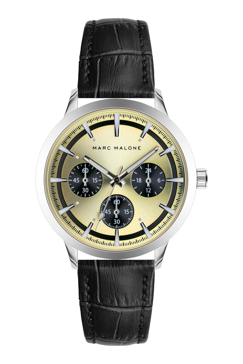 Leren Quartz Horloge - Zwart en Zilverkleurig - Marc Malone