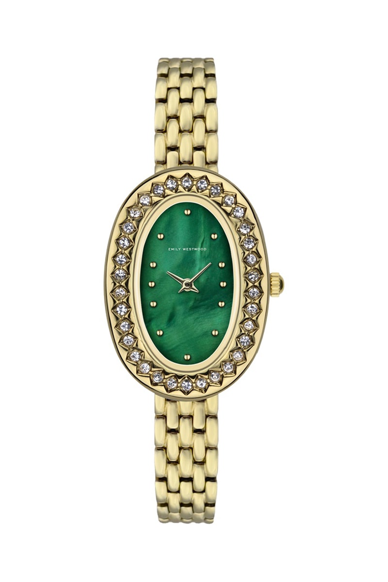 Stalen Quartz Horloge - Goudkleurig en Groen