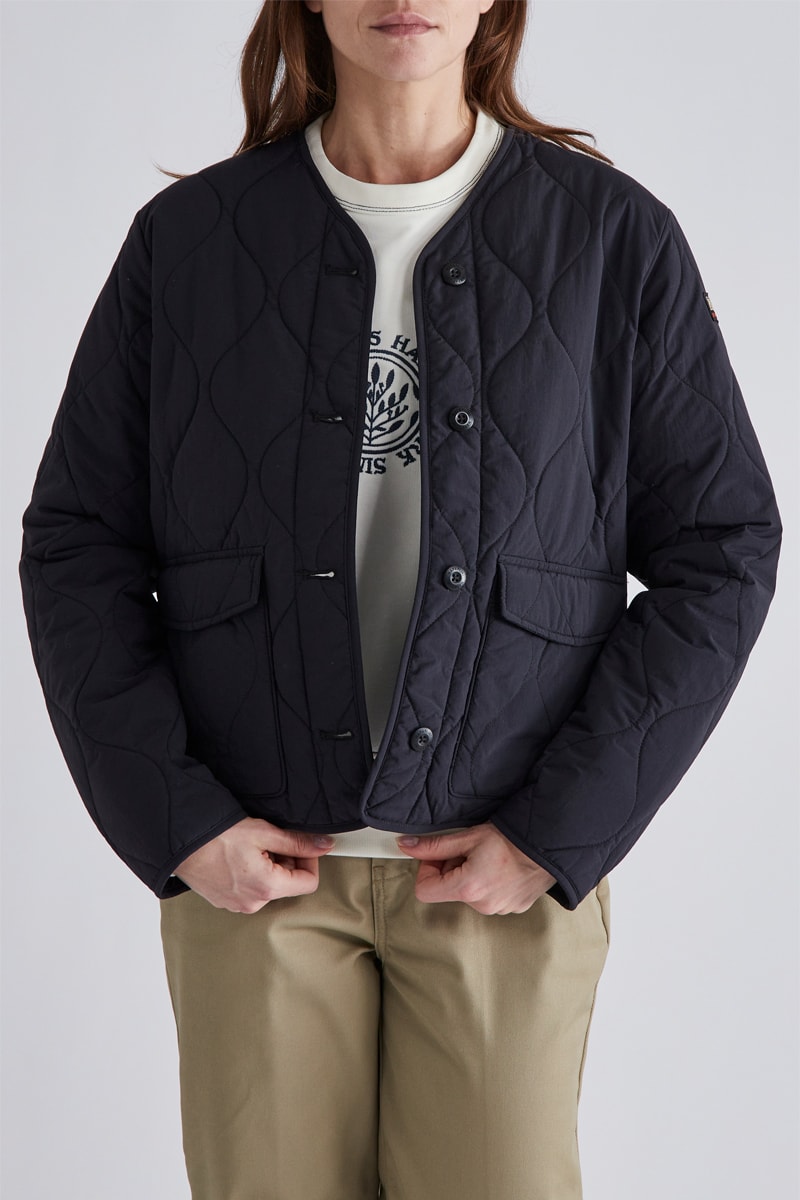 Gewatteerde jas met lange mouwen waarvan 1 met detail en logo.