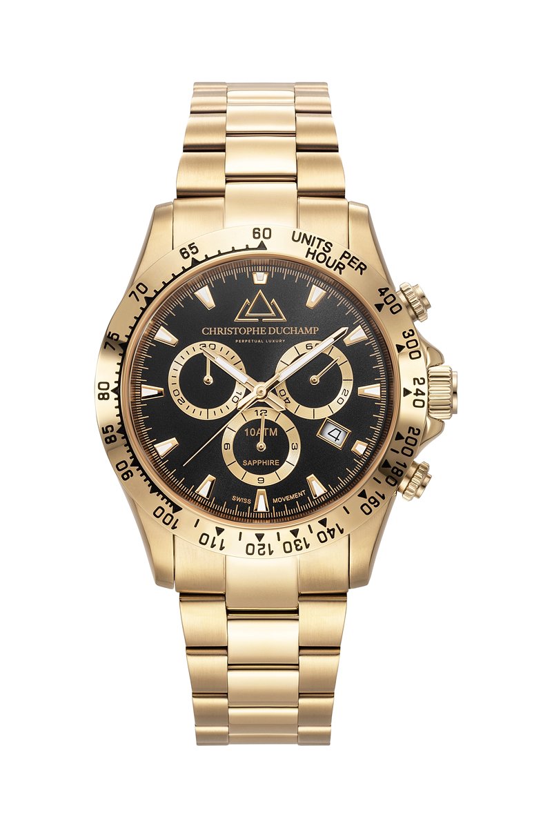 Stalen Quartz Horloge – Tachymeter en Chronograaf - Goudkleurig en Zwart