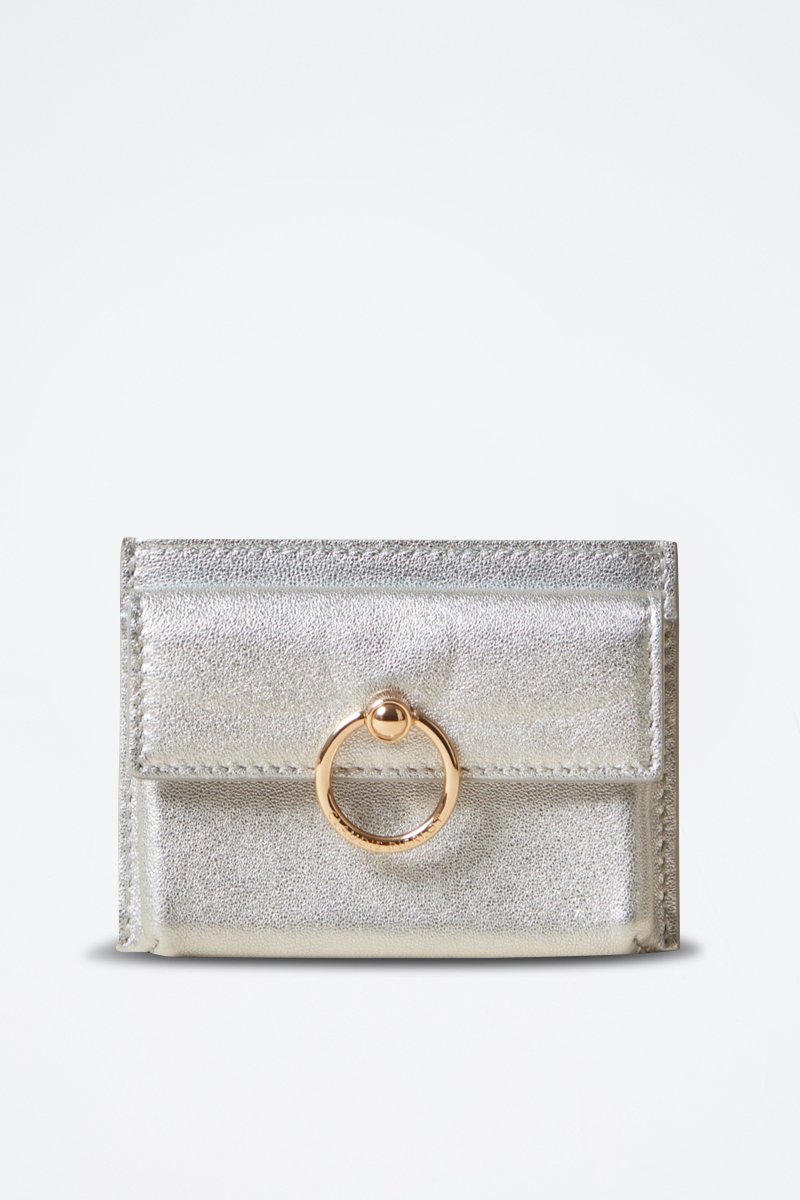 Klepvak met drukknoop voor muntgeld. Logo aan de achterkant.