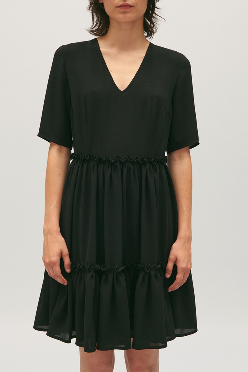 Jurk met Ruches - Zwart