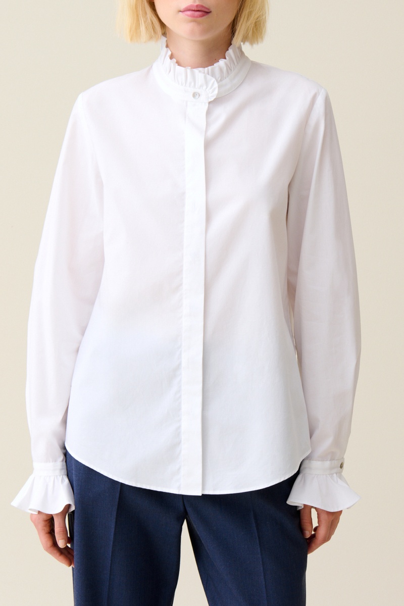 Opstaande kraag met ruches.