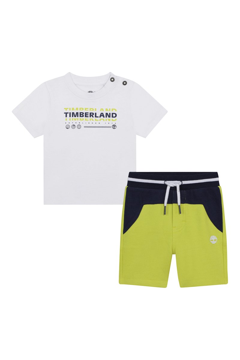Biologisch Katoenen T-shirt en Short - Wit en Limoengroen