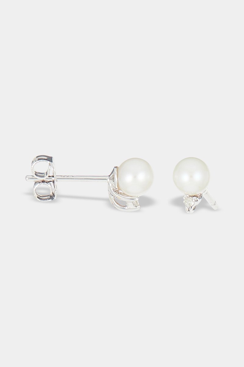 Oorbellen van witgoud ingelegd met 1 diamant en 1 cultivéparel.