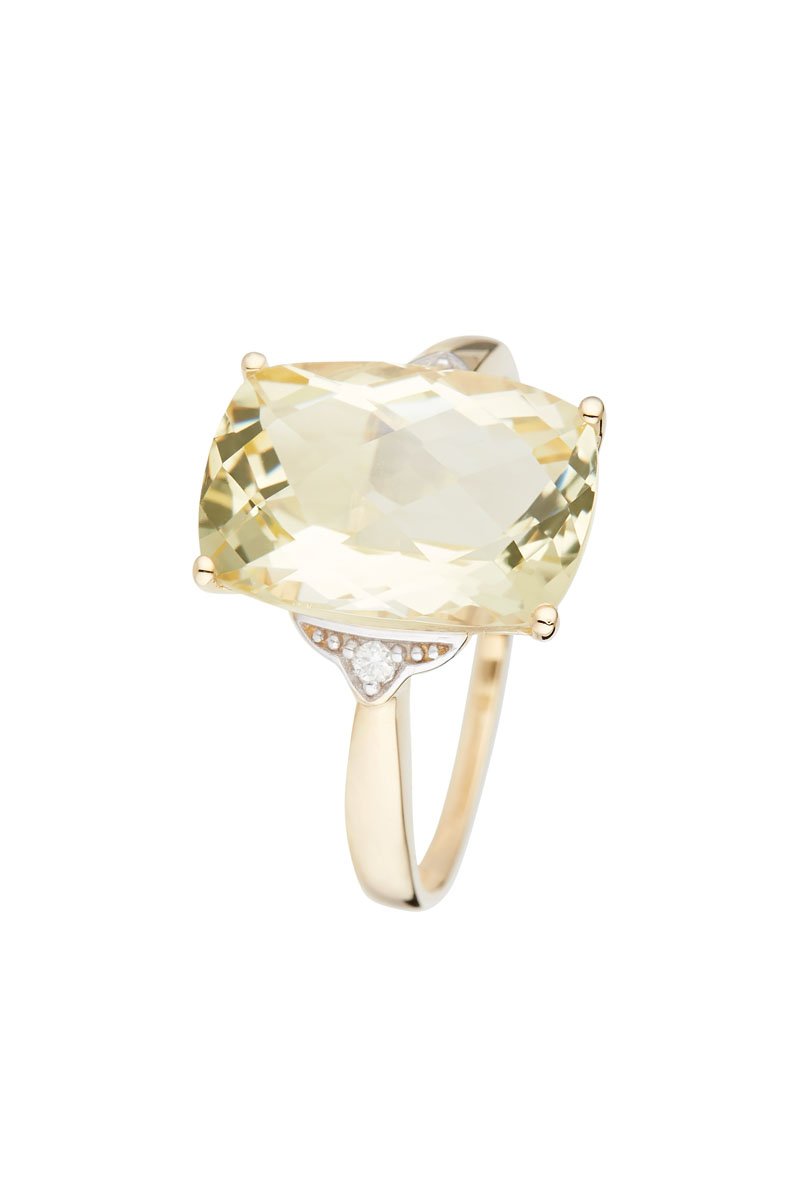 Bague Green Hill - Geelgoud, Kwarts en Diamanten