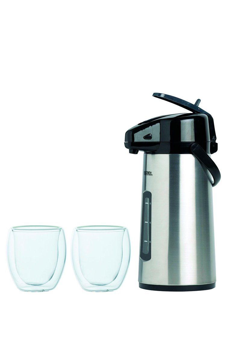 Roestvrijstalen en Borosilicaatglazen Thermoskan en 2 Koffiekopjes - 220 cl en 2 x 80 ml