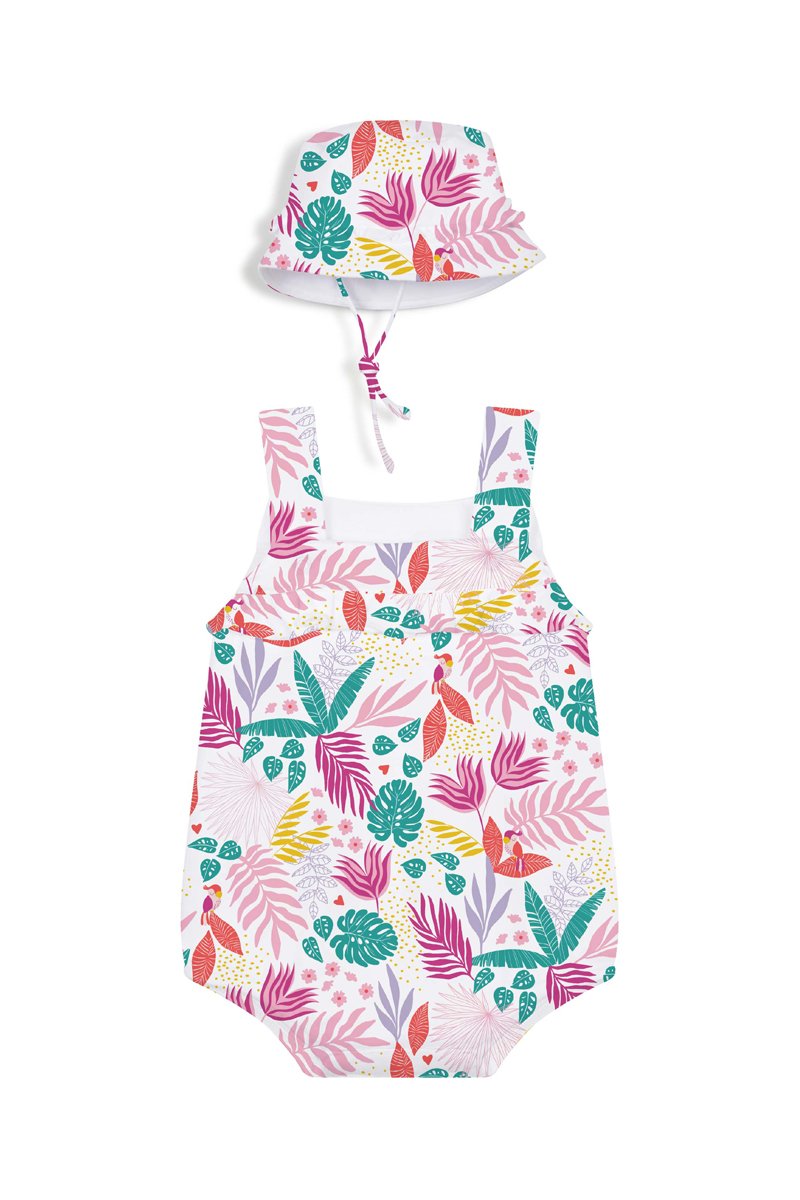Biologisch Katoenen Boxpakje en Bobhoedje- Wit en Fuchsia - Carrément Beau