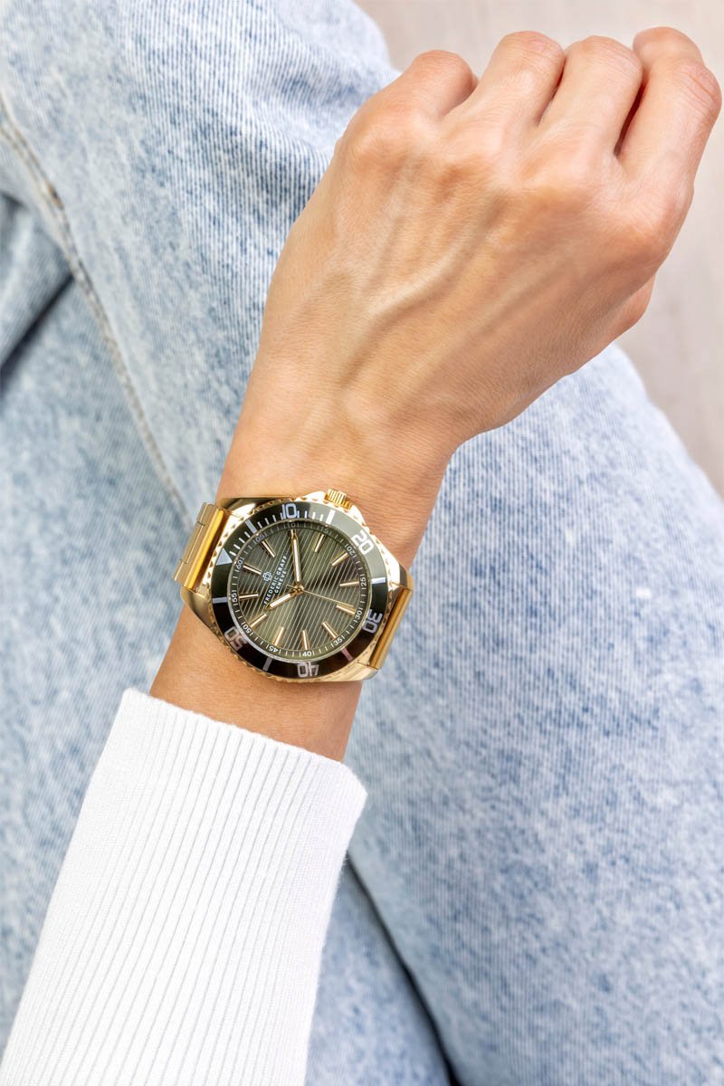Roestvrijstalen Quartz Horloge Doublé Ion Geelgoud - Goudkleurig en Zwart - Walter Bach