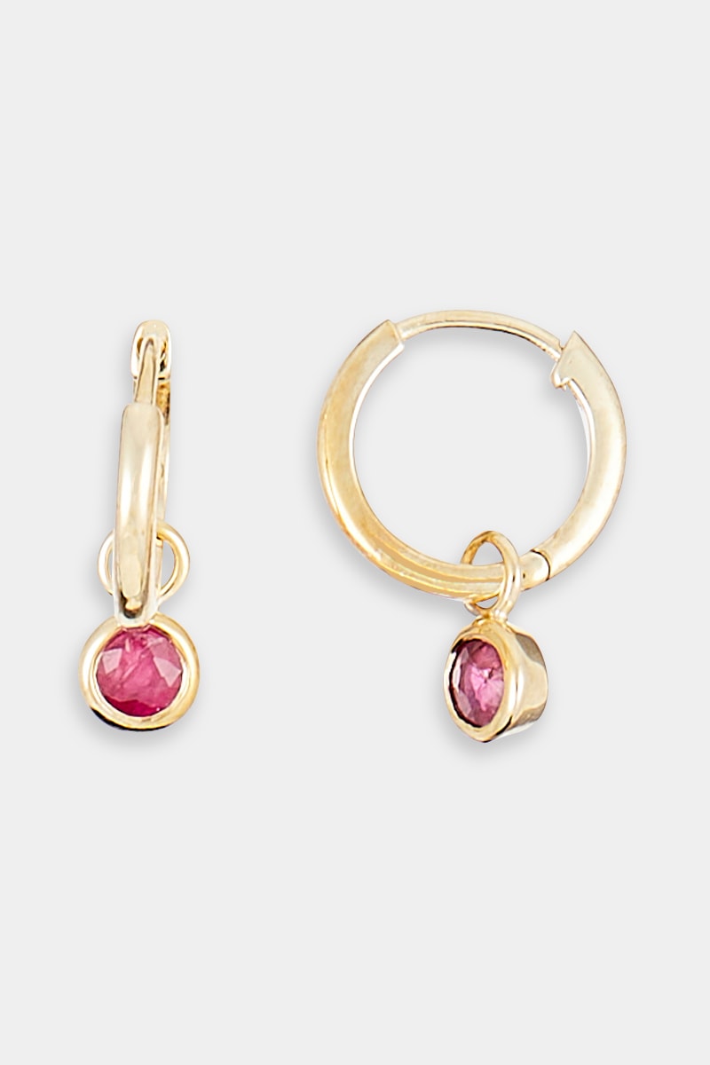 Creolen van geelgoud ingelegd met 1 Robijn.