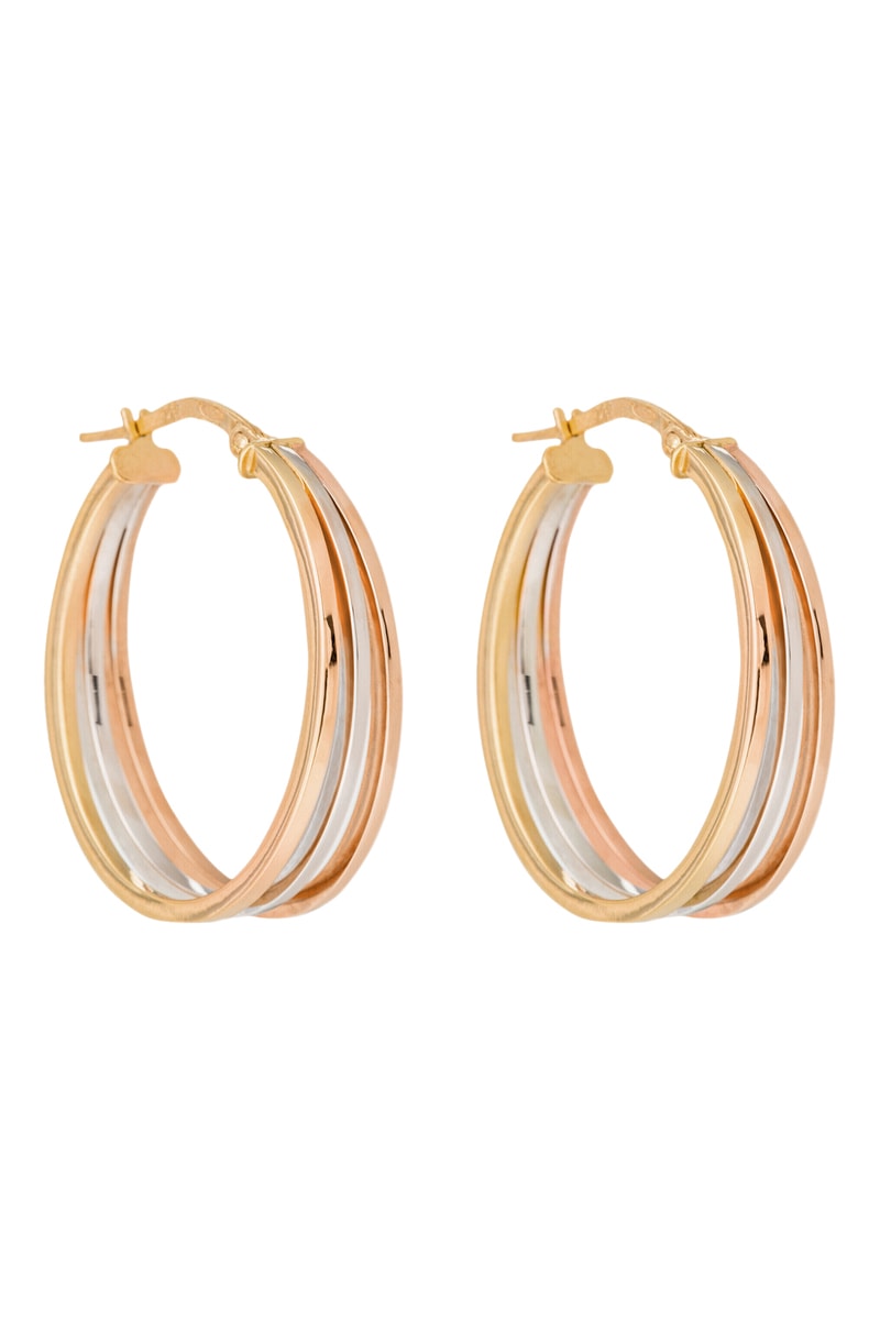 Creolen van roségoud, witgoud en geelgoud.