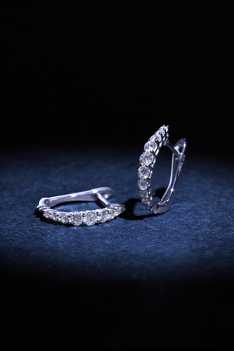 Oorbellen van witgoud ingelegd met 9 diamanten.