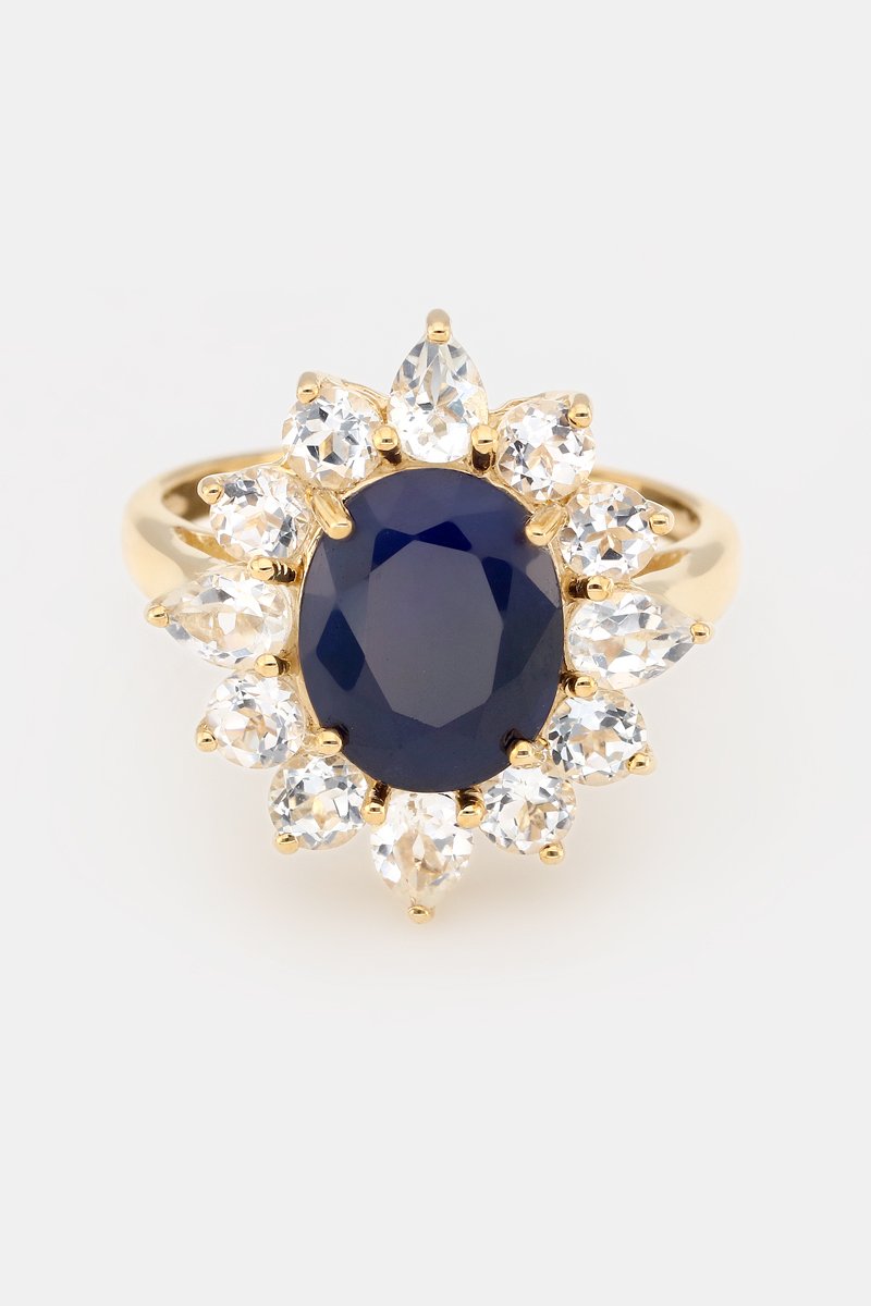 Materiaal: geelgoud 375/1000 en saffier 3,50 karaat/1